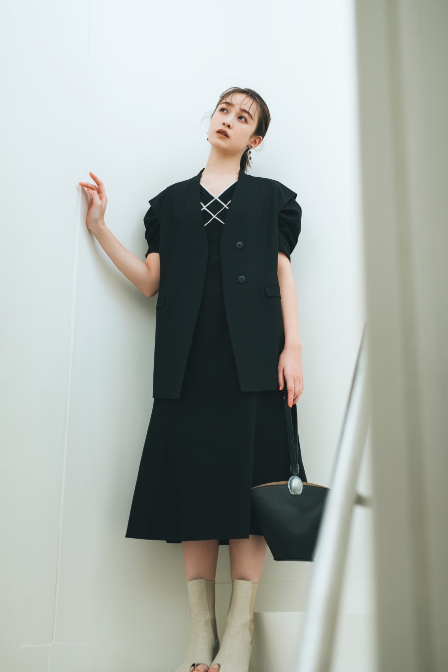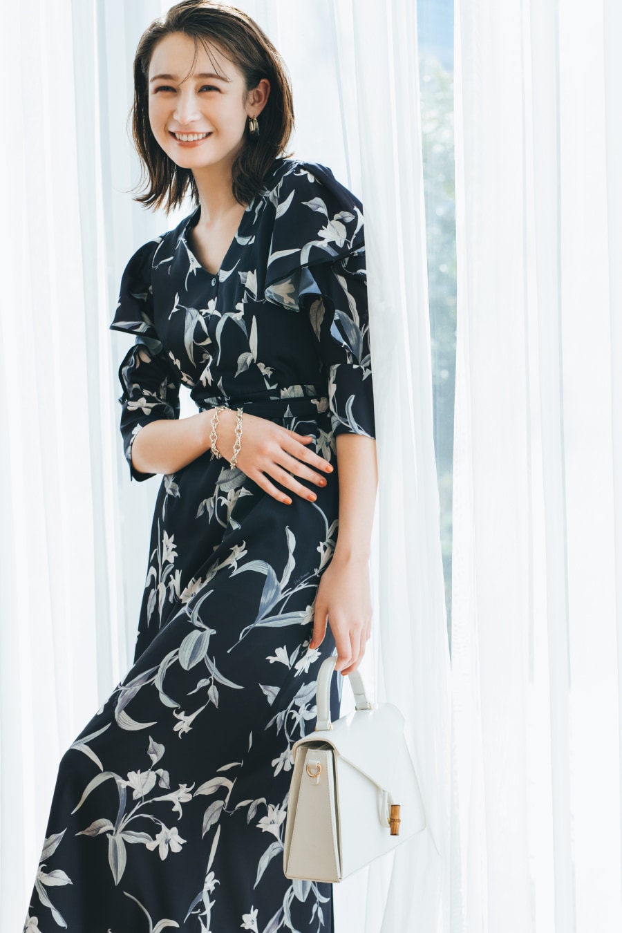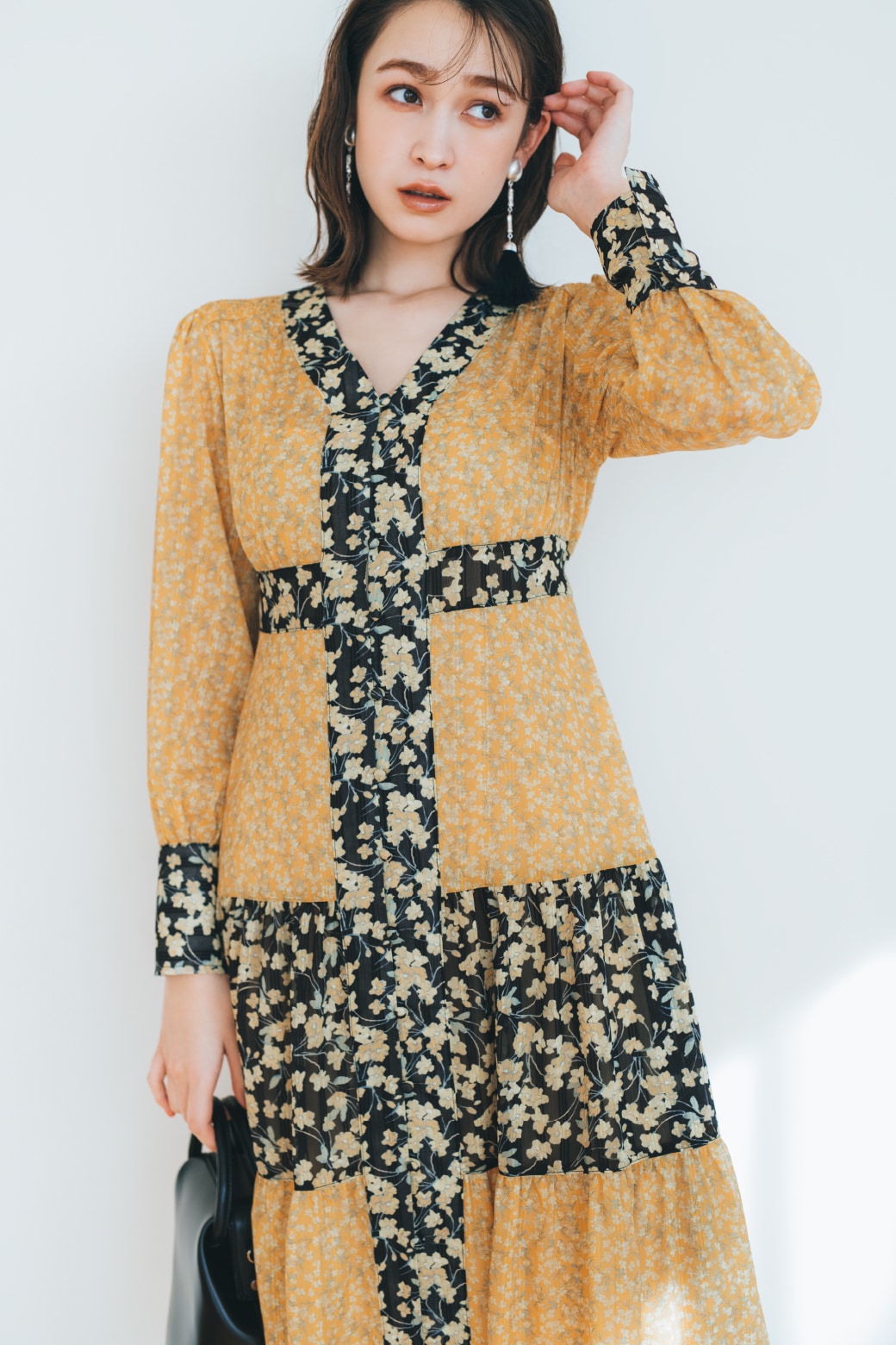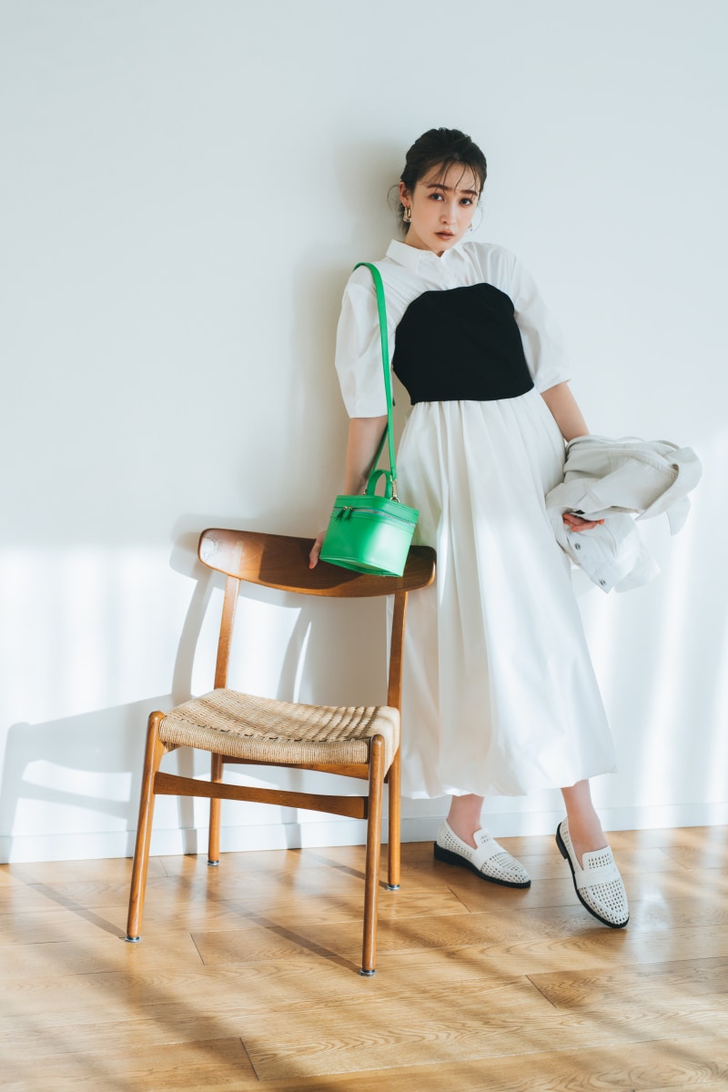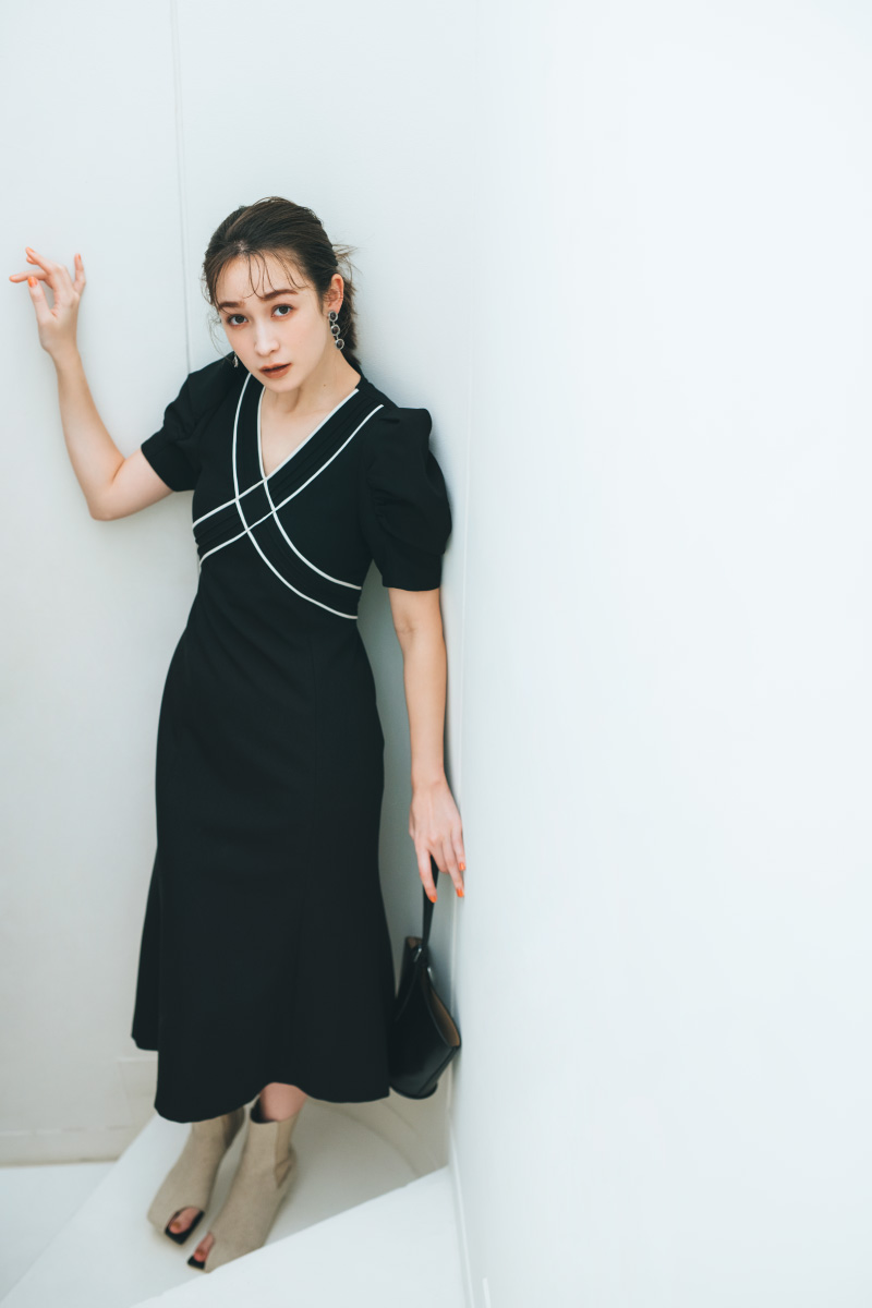 ONE-PIECE SACHI FUJII 藤井サチが着こなす、 “4つのキーワード”で見る今欲しい春ワンピース STYLE UP デコルテ魅せのネックラインと大きめ襟がポイントのニットワンピース。マーメードラインがトレンドムードを高め、スタイルアップ効果も◎。 爽やかなブルーを選べば一気に春気分に。 One-piece 13,970yen Earrings 3,080yen Shoes 12,980yen マーメードシルエットに進化した人気のワンピースはボディラインを360°綺麗に見せてくれるデザイン。今季トレンドのベストを合わせてモードな新鮮さをプラス。 Vest 14,850yen One-piece 12,980yen Earring 5,940yen Bag 9,900yen Shoes 14,960yen FLOWER PATTERN 王道のフラワー柄をリリー ブラウンらしくパッチワークデザインで表現。ガウンとしても羽織れる2Way仕様です。小物をブラックで統一することで、甘すぎない大人な表情に。 One-piece 17,930yen Earrings 2,860yen Bag 10,780yen Shoes 12,980yen ヴィンテージライクなボタニカルプリントが目を惹くワンピース。エレガントに波打つフリルが女性らしさを一気に加速させます。グルカサンダルを合わせればワンポイント上の春コーデに。 One-piece 16,500yen Earrings 2,640yen Necklace 9,900yen Bag 10,120yen Shoes 14,960yen FIT & FLARE シャツワンピースに丸みのある袖やコルセット風の切り返しを施しメリハリのあるシルエットに。優しい春色のストライプ生地に小物の色を合わせて、みんなの目を惹く“愛されレトロスタイル”が完成。 One-piece 18,700yen Hat 6,380yen Bag 10,120yen Shoes 14,960yen 1枚で完成度の高いビスチェ風デザインのワンピースはバルーンヘムとバックリボンでよりフェミニンな印象に。オーバーサイズのアウターを合わせて抜け感を出すのがオススメです。 Outer 13,970yen One-piece 16,940yen Earrings 2,640yen Bag 8,250yen Shoes 14,300yen MINI LENGTH Aラインシルエットがすっきり見えを叶えてくれるミニ丈ジャンパースカートは、取り外しできる大きめの襟がアクセント。カラートップスを合わせればアイコニックな60'sファッションの完成。 One-piece 12,980yen Tops 7,920yen Pierced earrings 2,860yen Bracelet 3,850yen Shoes 14,960yen ベストがドッキングされたクラシカルなミニ丈ワンピースは、女性の好きなディテールがたっぷりと詰まった1枚。春のブラックスタイルにはカラー小物でアクセントをつけるのが正解。 One-piece 14,300yen Earrings 4,180yen Bag 9,900yen Shoes 14,960yen CHECK ALL ONE-PIECE CHECK ALL ITEMS