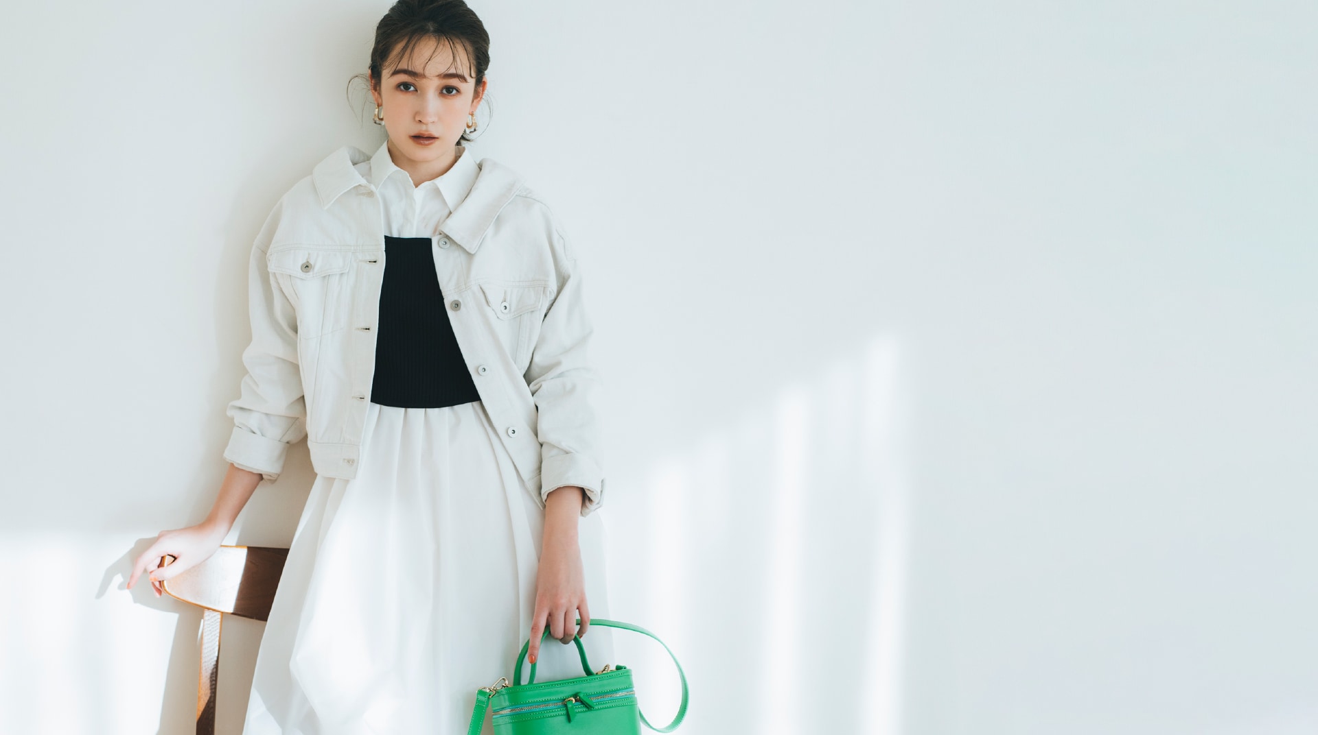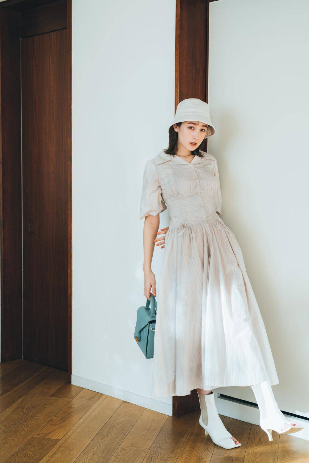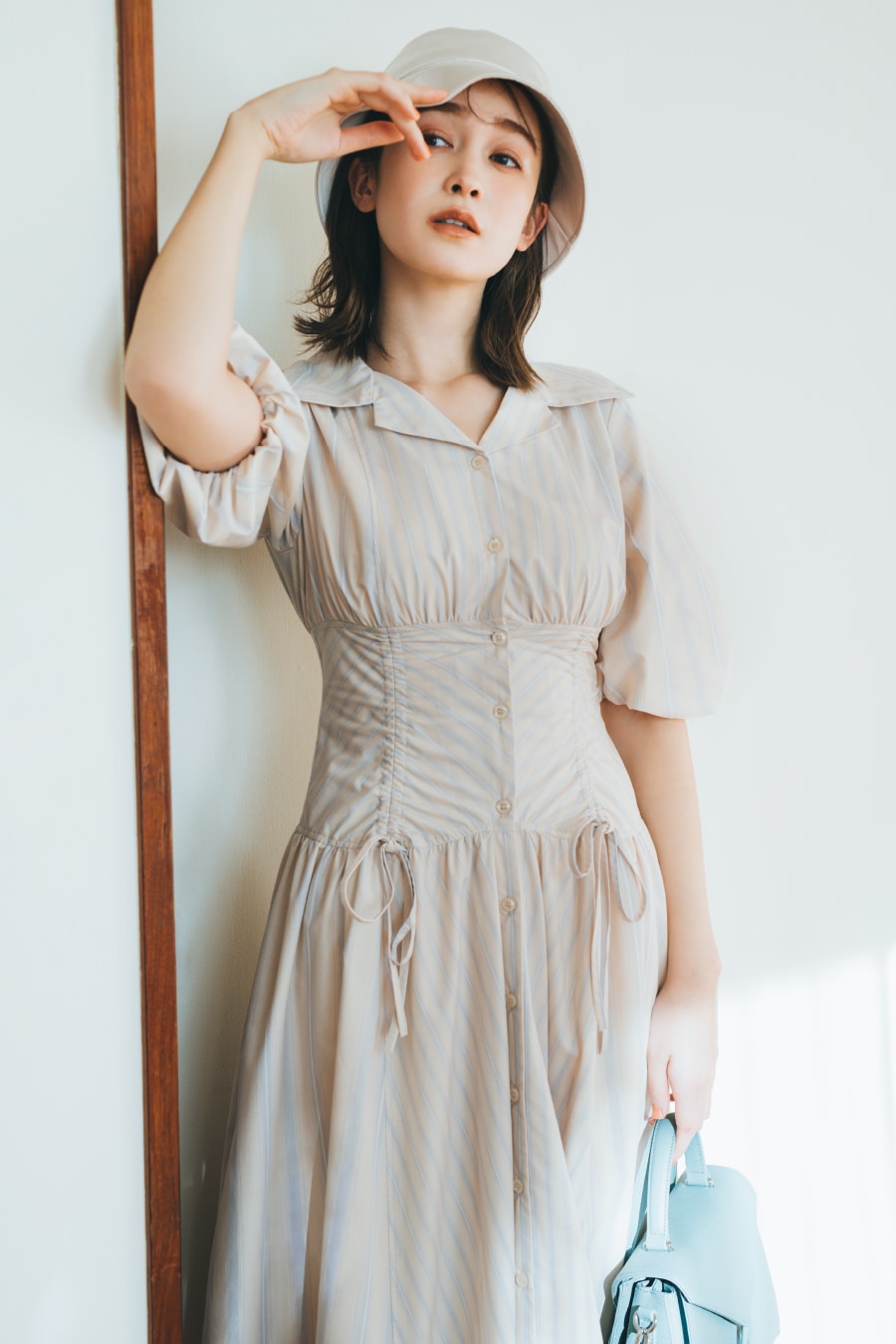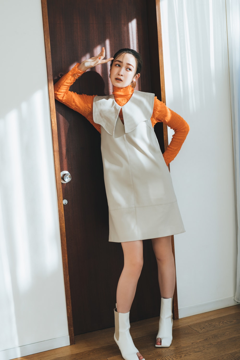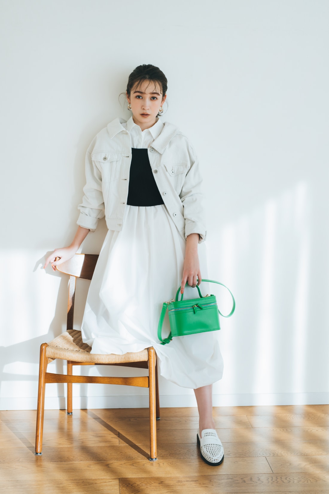 ONE-PIECE SACHI FUJII 藤井サチが着こなす、 “4つのキーワード”で見る今欲しい春ワンピース STYLE UP デコルテ魅せのネックラインと大きめ襟がポイントのニットワンピース。マーメードラインがトレンドムードを高め、スタイルアップ効果も◎。 爽やかなブルーを選べば一気に春気分に。 One-piece 13,970yen Earrings 3,080yen Shoes 12,980yen マーメードシルエットに進化した人気のワンピースはボディラインを360°綺麗に見せてくれるデザイン。今季トレンドのベストを合わせてモードな新鮮さをプラス。 Vest 14,850yen One-piece 12,980yen Earring 5,940yen Bag 9,900yen Shoes 14,960yen FLOWER PATTERN 王道のフラワー柄をリリー ブラウンらしくパッチワークデザインで表現。ガウンとしても羽織れる2Way仕様です。小物をブラックで統一することで、甘すぎない大人な表情に。 One-piece 17,930yen Earrings 2,860yen Bag 10,780yen Shoes 12,980yen ヴィンテージライクなボタニカルプリントが目を惹くワンピース。エレガントに波打つフリルが女性らしさを一気に加速させます。グルカサンダルを合わせればワンポイント上の春コーデに。 One-piece 16,500yen Earrings 2,640yen Necklace 9,900yen Bag 10,120yen Shoes 14,960yen FIT & FLARE シャツワンピースに丸みのある袖やコルセット風の切り返しを施しメリハリのあるシルエットに。優しい春色のストライプ生地に小物の色を合わせて、みんなの目を惹く“愛されレトロスタイル”が完成。 One-piece 18,700yen Hat 6,380yen Bag 10,120yen Shoes 14,960yen 1枚で完成度の高いビスチェ風デザインのワンピースはバルーンヘムとバックリボンでよりフェミニンな印象に。オーバーサイズのアウターを合わせて抜け感を出すのがオススメです。 Outer 13,970yen One-piece 16,940yen Earrings 2,640yen Bag 8,250yen Shoes 14,300yen MINI LENGTH Aラインシルエットがすっきり見えを叶えてくれるミニ丈ジャンパースカートは、取り外しできる大きめの襟がアクセント。カラートップスを合わせればアイコニックな60'sファッションの完成。 One-piece 12,980yen Tops 7,920yen Pierced earrings 2,860yen Bracelet 3,850yen Shoes 14,960yen ベストがドッキングされたクラシカルなミニ丈ワンピースは、女性の好きなディテールがたっぷりと詰まった1枚。春のブラックスタイルにはカラー小物でアクセントをつけるのが正解。 One-piece 14,300yen Earrings 4,180yen Bag 9,900yen Shoes 14,960yen CHECK ALL ONE-PIECE CHECK ALL ITEMS
