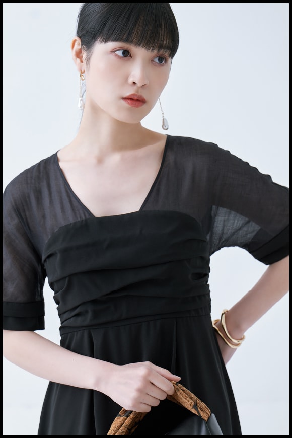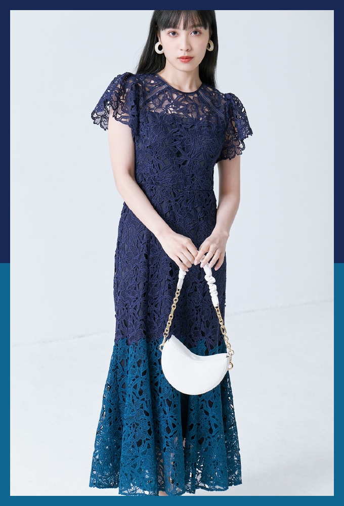 longormini “特別な日に着たい服” 結婚式やデート、女子会など特別な日にぴったりのアイテムがラインアップ。 繊細なレースやシアー素材、ビジューなど、 華やぐデザインを身に纏ってドレスアップを思いっきり楽しんで。 long 01 チュールとレースを胸元にあしらったワンピースは座っても華やかな印象なので食事会や結婚式にぴったり。 小物をゴールドで統一してモード感をプラスして。 Dress 18,920yen Bag 11,550yen Pierced earrings 4,620yen Sandals 9,900yen 02 オケージョンシーンで定番の総レースのドレスはマーメイドシルエットでさらにエレガントに。 裾の配色が特別感のある、周りと差のつくアイテムです。 Dress 24,750yen Bag 9,900yen Earrings 3,960yen Sandals 13,750yen 03 シーンを選ばず着られる黒のワンピースはショルダー部分の透け感で女性らしさを演出。 胸元のギャザーの切り替えがスタイルアップも叶えてくれます。 Dress 18,480yen Bag 8,800yen Pierced earrings 3,300yen Bangle 6,380yen Sandals 14,850yen mini 01 繊細な模様が浮かぶオリジナルのレース素材が華やかなミニドレス。 オケージョンシーンはもちろん、小物やパンツ合わせでカジュアルにも着られるアイテムです。 Dress 13,970yen Bag 11,220yen Earrings 4,950yen 02 ビジューが目を惹くミニスカートにボウタイブラウスを合わせれば華やかなお出かけスタイルの完成。 女子会やデートなどいつもより少し張り切りたい日にオススメです。 Tops 9,900yen Skirt 16,500yen Hair accessory 2,750yen Pierced earrings 3,520yen Boots 14,850yen 03 レースとドット柄のオーガンジーを重ねた大きめのスリーブが印象的なミニワンピース。 動くたびに揺れるフリルが気になる腕を隠しつつ、可憐な仕草を演出してくれます。 Dress 14,300yen Bag 11,880yen Pierced earrings 1,980yen Bracelet 4,730yen