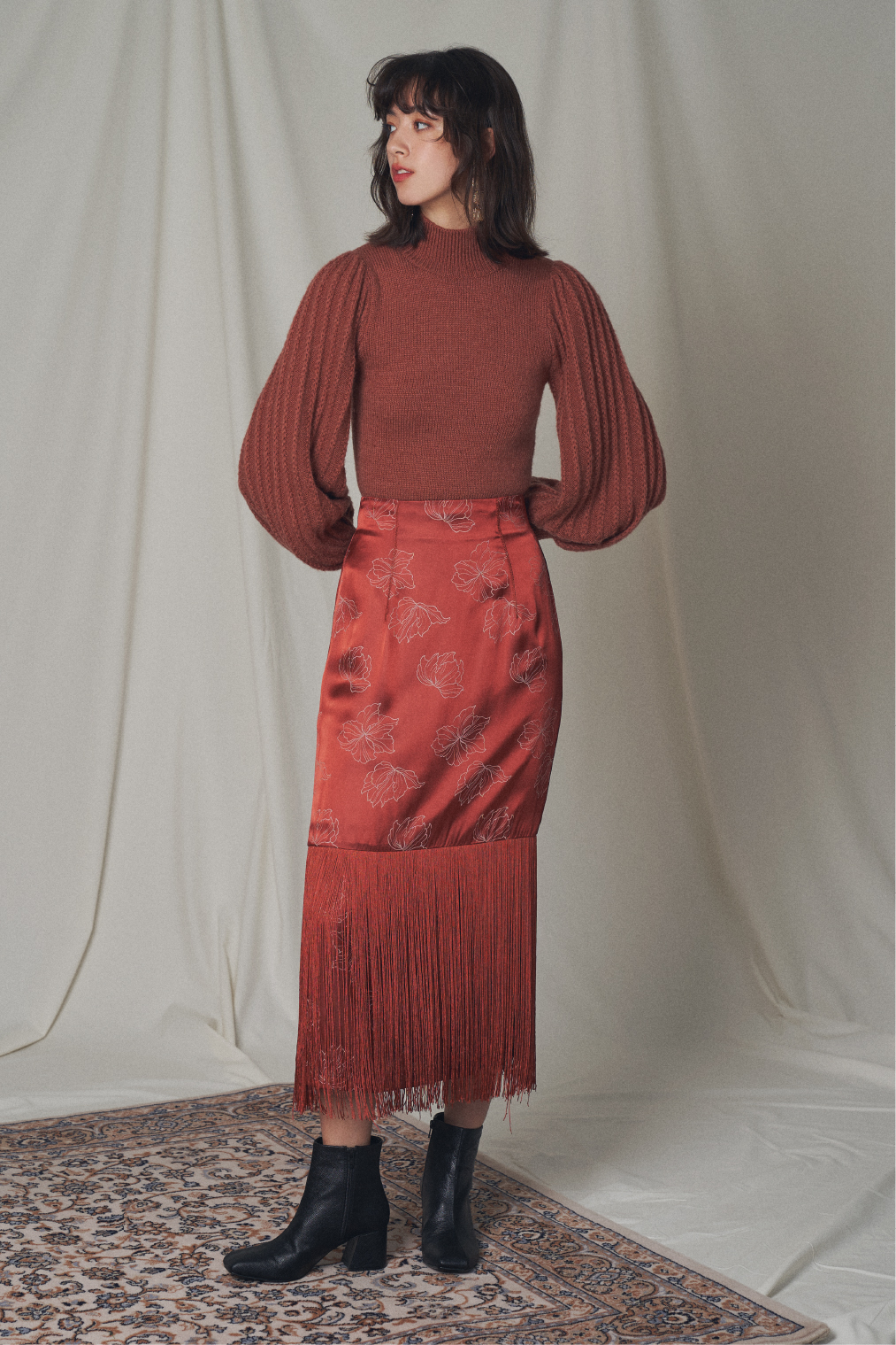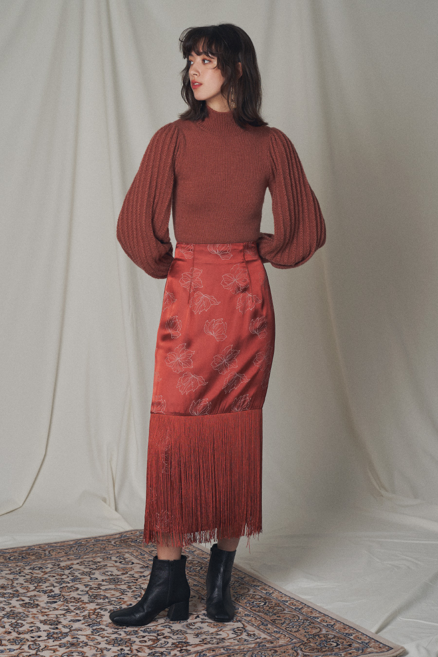 Knit 9,400yen+tax Skirt 13,600yen+tax Boots 13,200yen+tax Earrings 3,400yen+tax