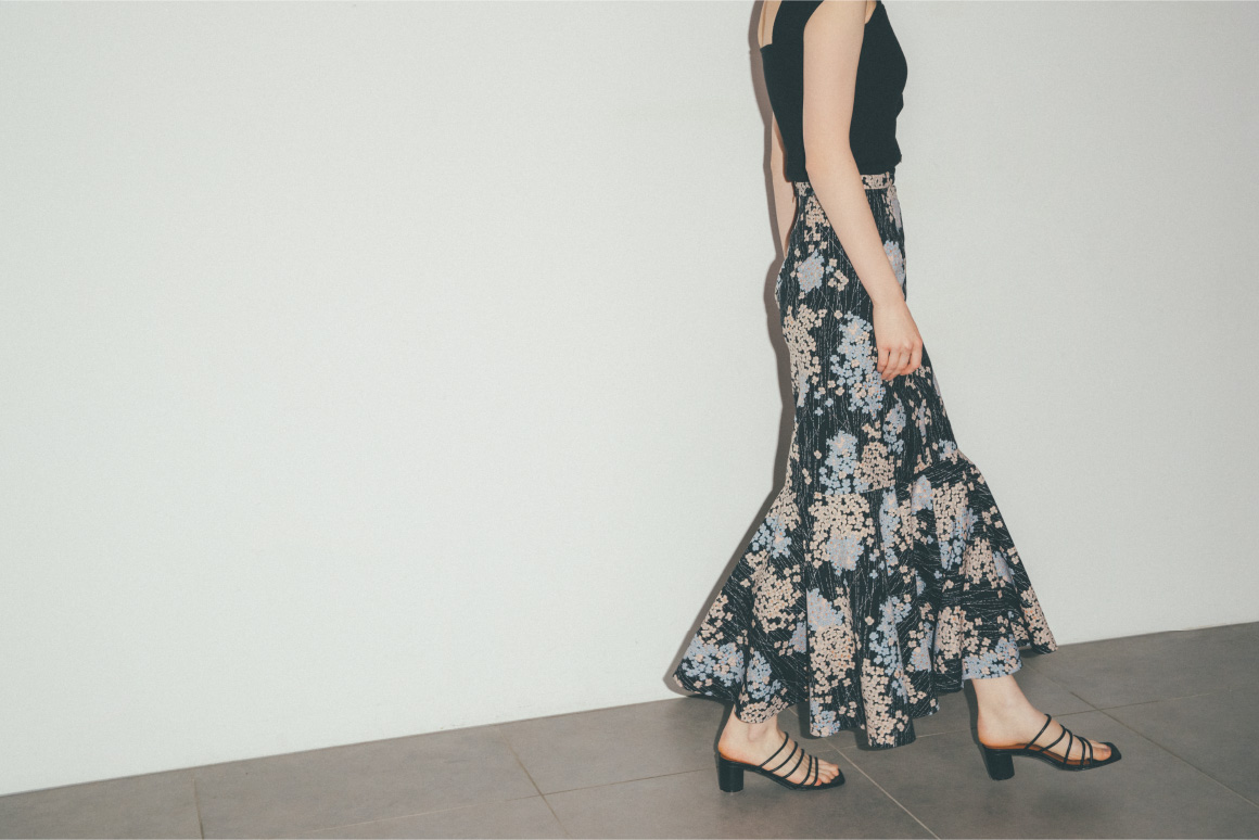 Tops 4,800yen+tax Skirt 11,800yen+tax Pierced earrings 3,600yen+tax Shoes 11,400yen+tax
