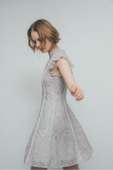 しなやかなシフォン素材に立体的な小花刺繍をたっぷり施したワンピース。シフォンと刺繍の甘くなりがちなディティールをシルエットやカラーリングで上品なヴィンテージ感へと仕上げました。