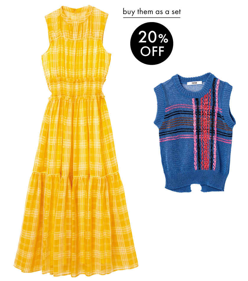 Cardigan 9,000yen+tax + Dress 13,500yen+tax= 22,500yen+tax(20%off) 18,000yen+tax