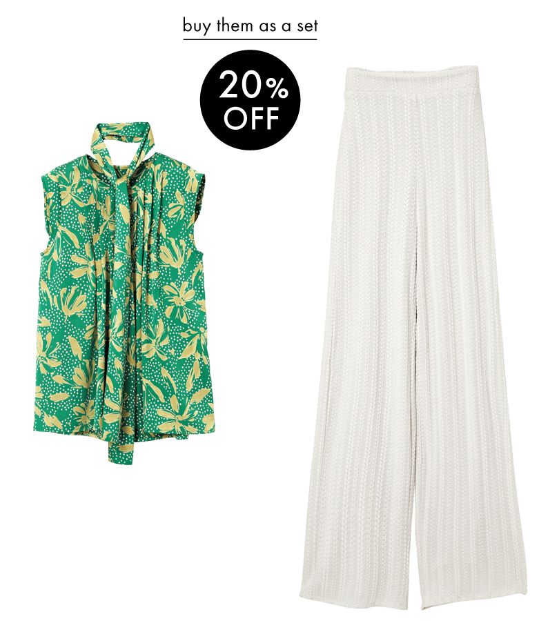 Blouse 8,300yen+tax + Pants 8,800yen+tax= 17,100yen+tax(20%off) 13,680yen+tax