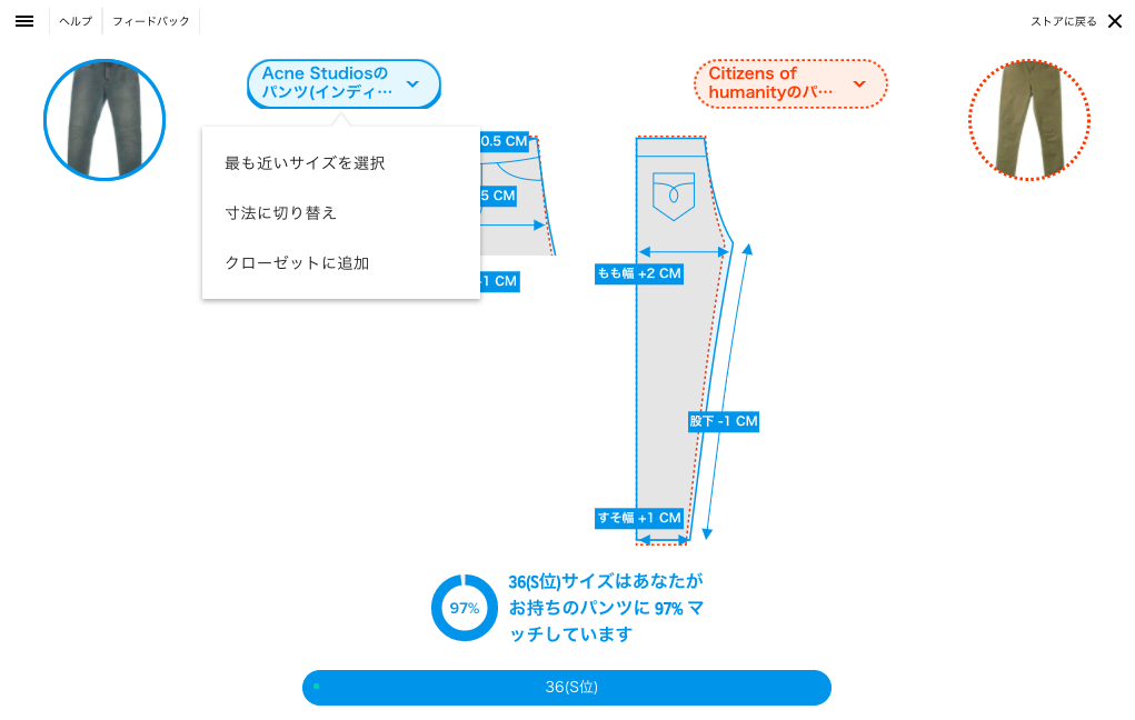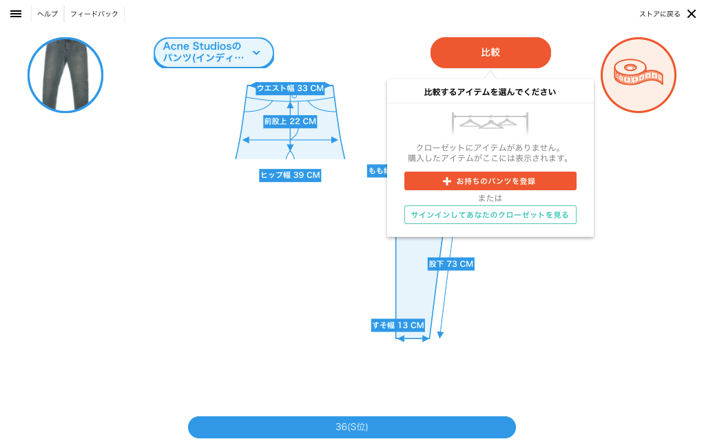 3. ストアのアイテムと、ご自身のアイテムのサイズを比較