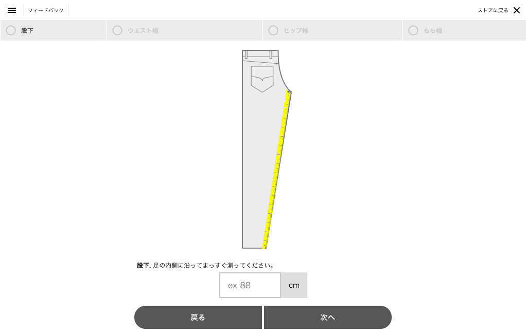 - 入力ガイドに沿って寸法を測り、入力欄にサイズ情報を入力します。