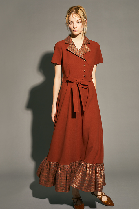 襟と裾に切り替えが華やかな雰囲気を醸し出す、渋谷パルコ店限定のワンピース。