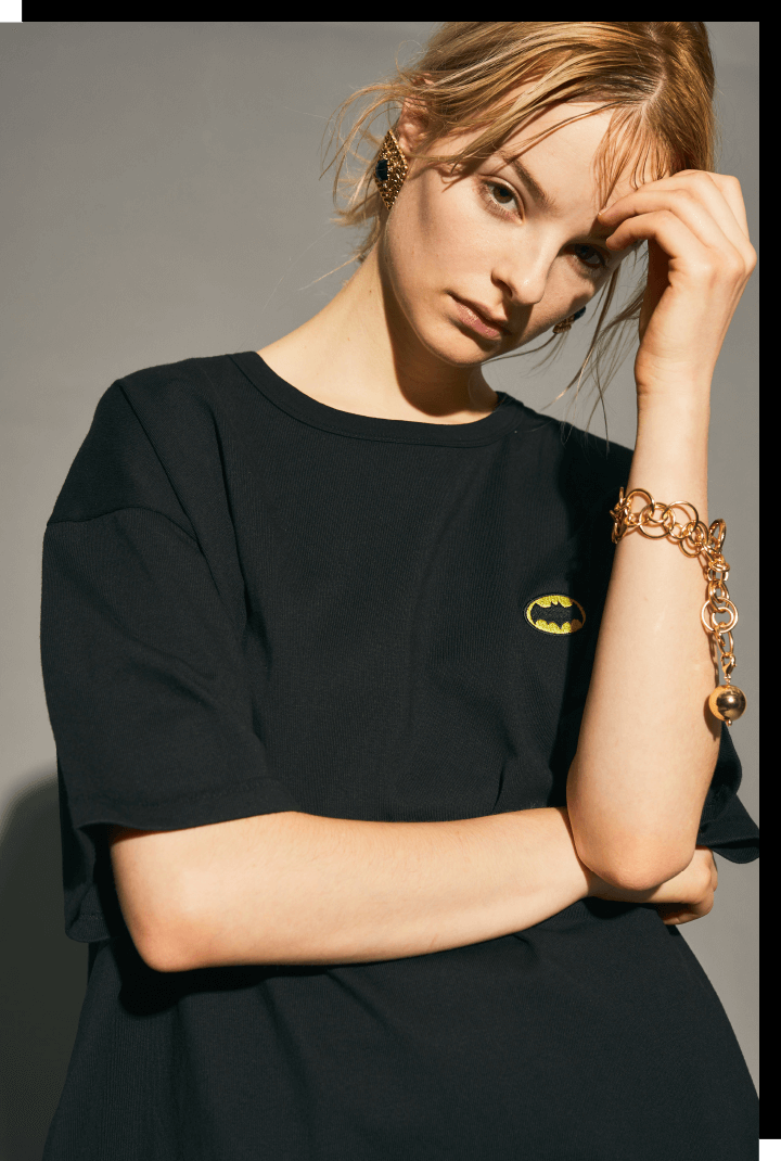 BATMAN(バットマン)が Lily Brownとスペシャルコラボレーション。 インパクトのあるBATMANの世界観を アパレルに落とし込み、 Lily Brownならではのヴィンテージライクな カラーリングとデザインで登場します。 Tシャル2型、ニットトップス1型、シャツ1型を ラインナップします。